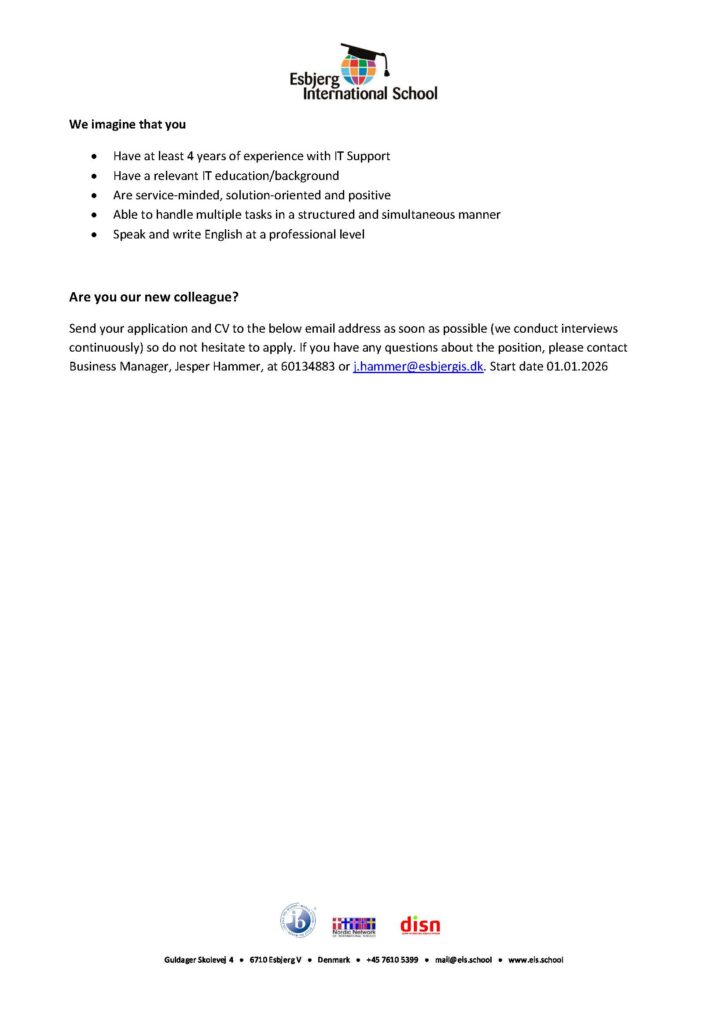 Applicants with a minimum of a Bachelor degree are welcome to work on a temporary basis at EIS as a Supply Teacher. To be eligible, you need to: